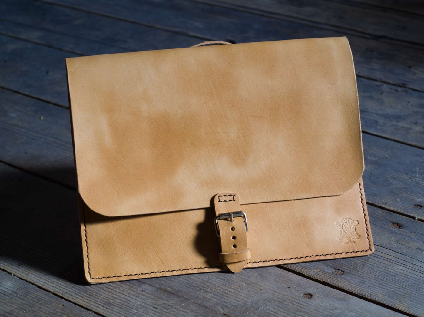 Solidne skórzane etui na tablet, laptop lub podobny na sprzęt elektroniczny. Jeśli wymieniając urządzania na nowe, będziesz trzymać się tego samego rozmiaru, to będziesz mieć etui na lata. Świetnie pasuje do iPadów, MacBooków oraz podobnych urządzeń o nowoczesnym wzornictwie. Skóra naturalna produkowana tradycyjnymi metodami i najnowsze technologie wyglądają moim zdaniem świetnie obok siebie. Etui będzie dopasowane do wymiarów Twojego sprzętu (po złożeniu zamówienia, kontaktuję się w celu ustalenia szczegółów). Przedmiot dla osób, które już zniechęciły się jakością, trwałością i powtarzalnością generycznych etui produkowanych w Chinach.